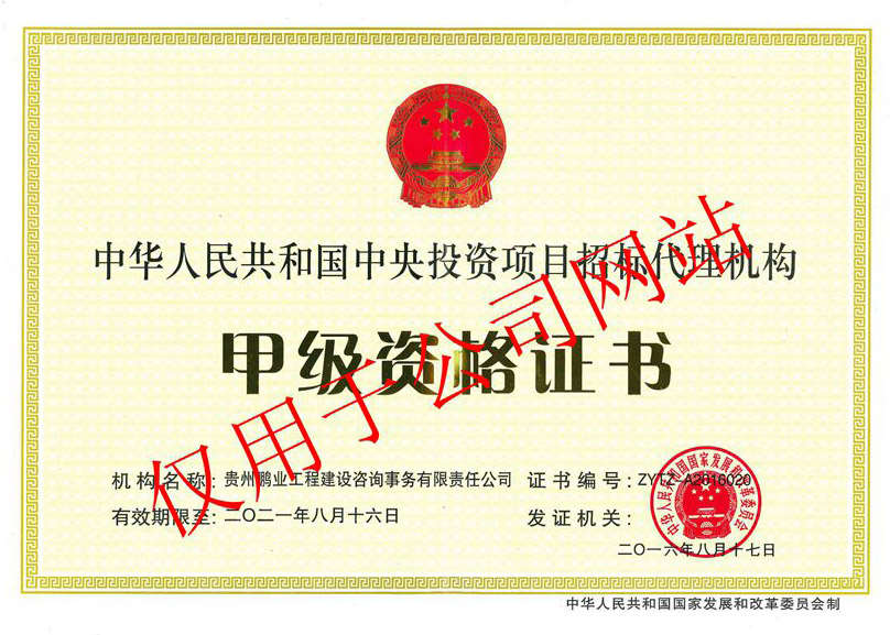 中央投資項(xiàng)目招標(biāo)代理甲級(jí)資質(zhì)證書